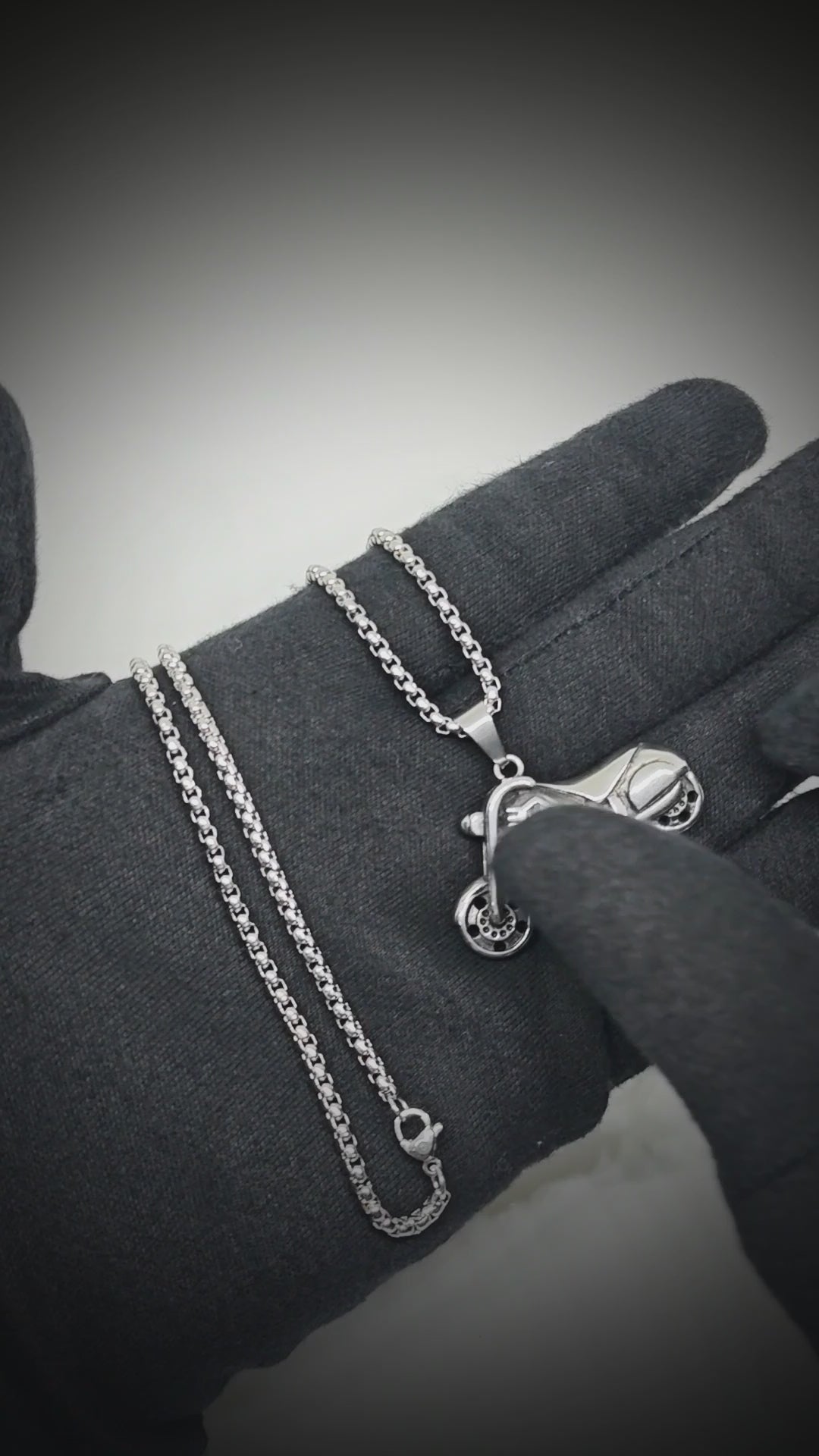 Wear it as a focal point of your everyday look or pair it with a leather jacket for a complete, head-turning ensemble. The THUNDER BIKE pendant blends bold design with lasting durability, delivering a dependable piece that enhances your personal style with every wear.