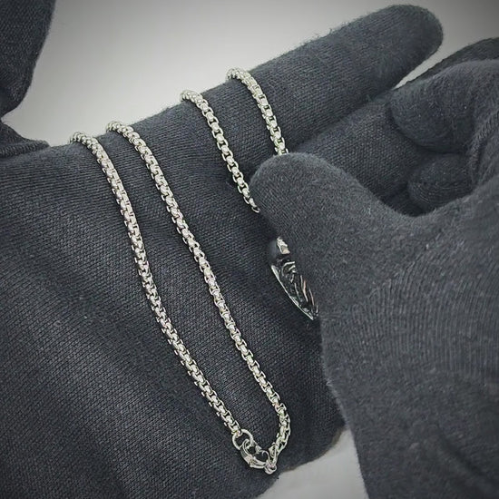 Introducing VALOR LION — a bold 27mm titanium steel pendant finished with a rugged, shield-shaped silhouette and a meticulously sculpted lion head. Paired with a 24-inch round box chain and a 5mm width, this masculine necklace sits proudly on the chest, making a confident statement for men and boys alike.
